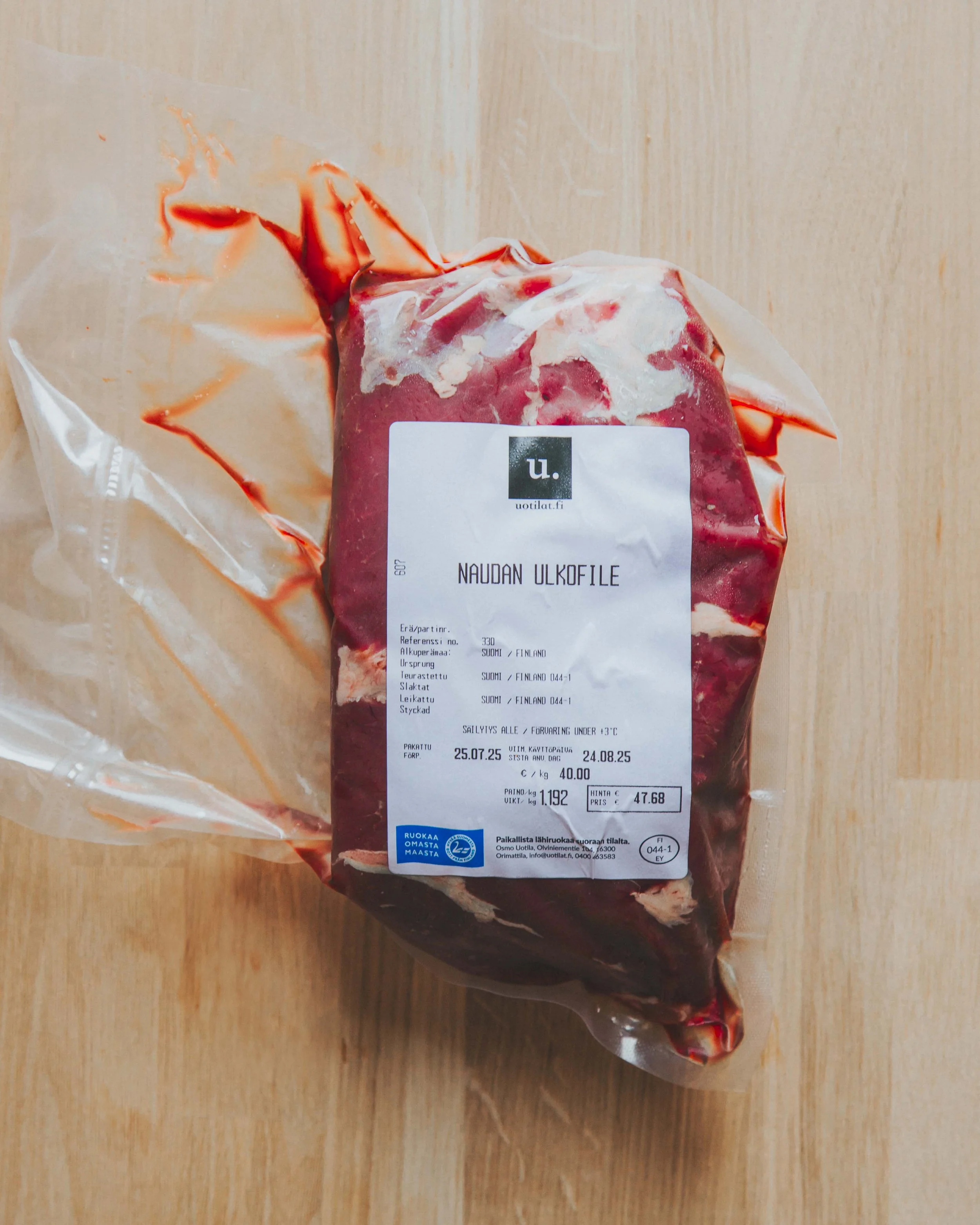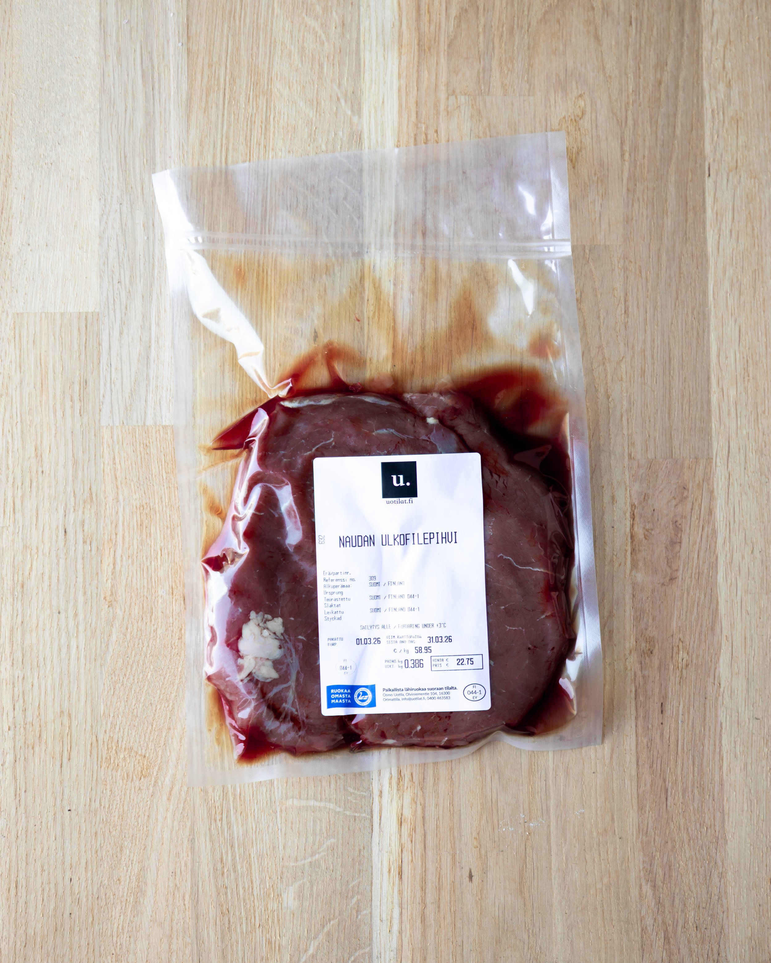 Tuote: Angus-Limousin valmiiksi leikatut ulkofilepihvit tai kokonainen ulkofile.